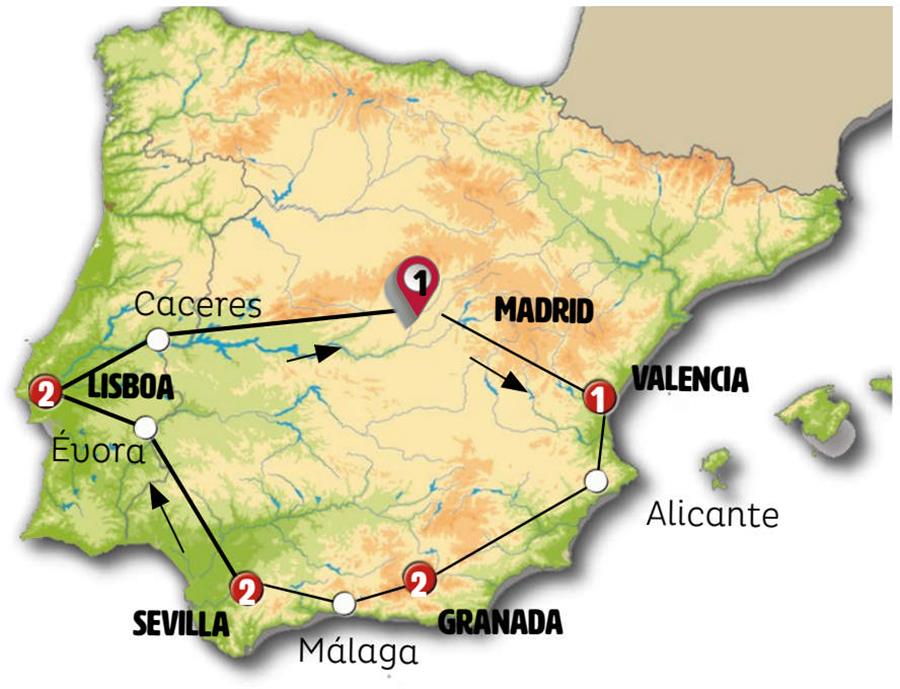 - VALENCIA - ALICANTE - CARAVACA DE LA CRUZ - GRANADA.