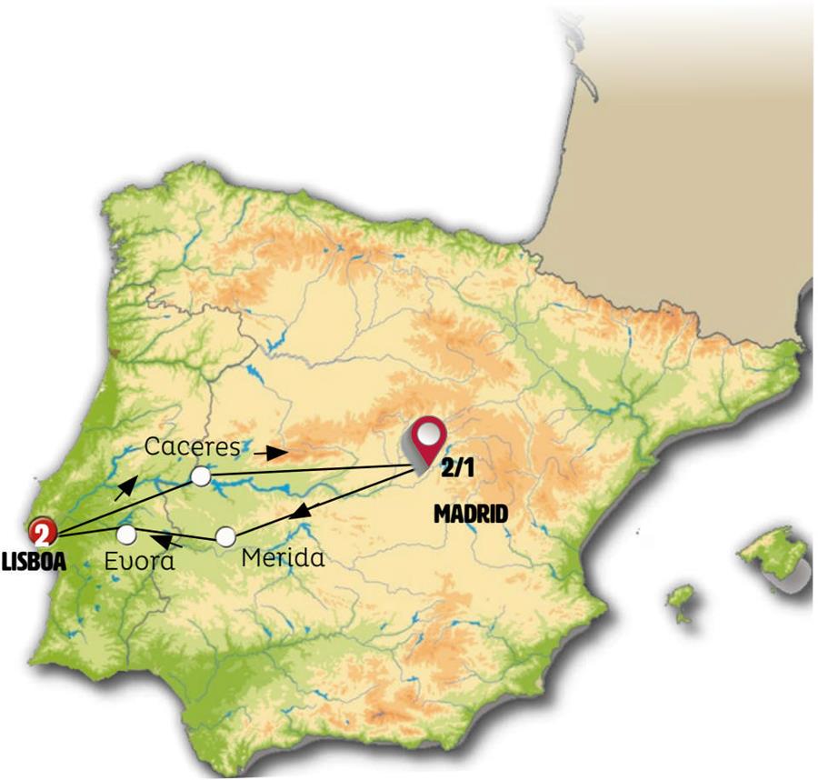 - MADRID - MERIDA - EVORA - LISBOA.