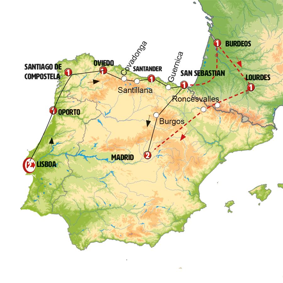 - SANTIAGO DE COMPOSTELA - LUGO - O CEBREIRO - LEON - OVIEDO.