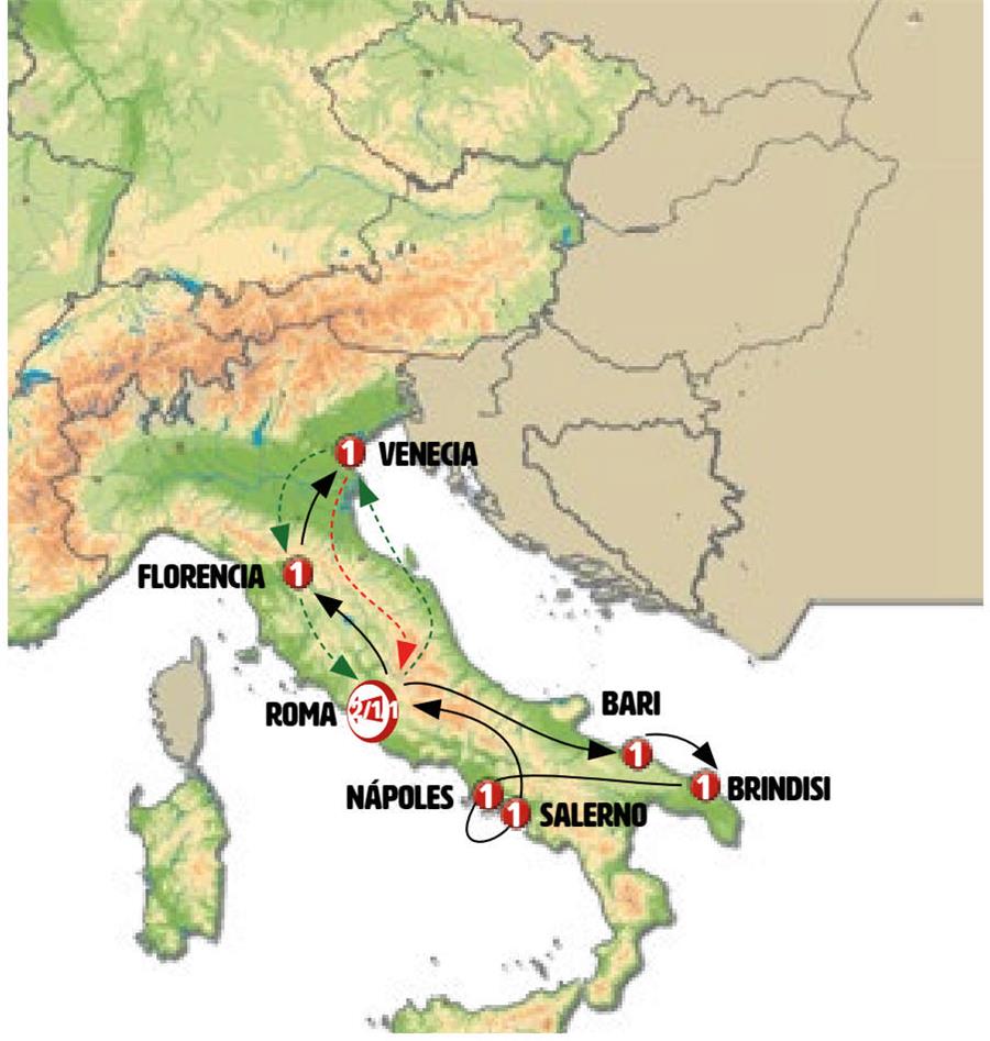 - SALERNO - POMPEYA - NAPOLES - CASSINO - ROMA.
