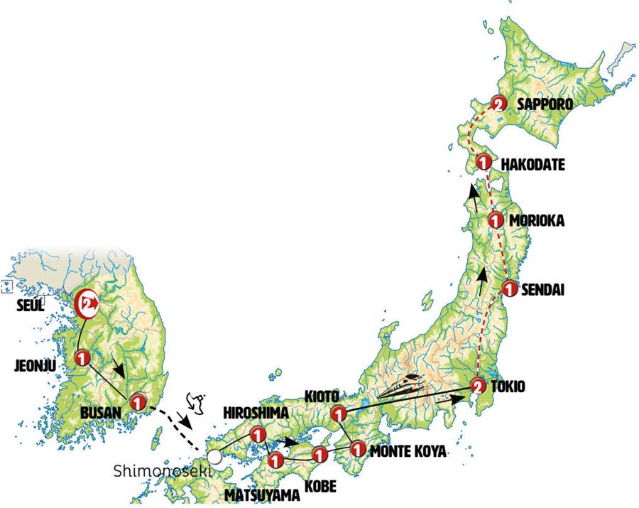 - FERRI BUSAN SHIMONOSEKI - SHIMONOSEKI - IWAKUNI - ITSUKUSHIMA - HIROSHIMA.