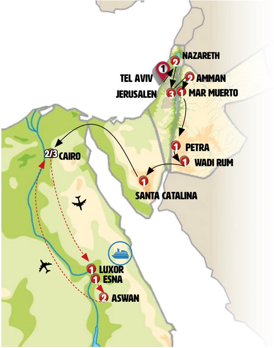 - WADI RUM - AQABA - EILAT - SANTA CATALINA.