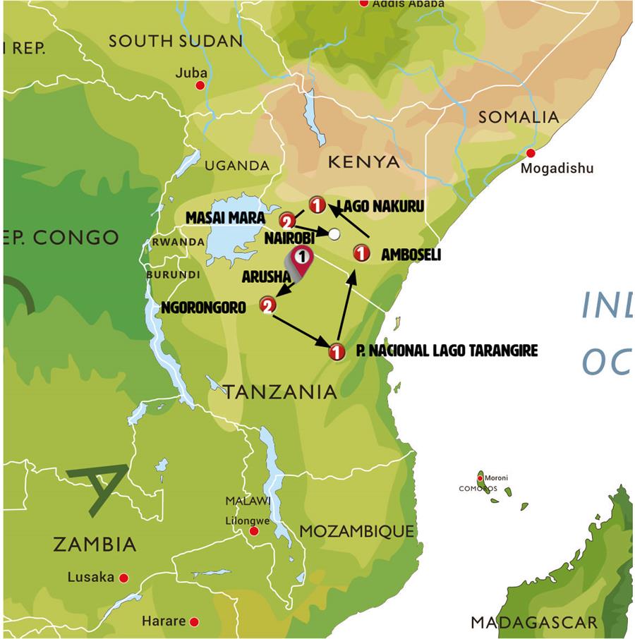 - P. NACIONAL LAGO TARANGIRE - ARUSHA - NAMANGA - AMBOSELI.